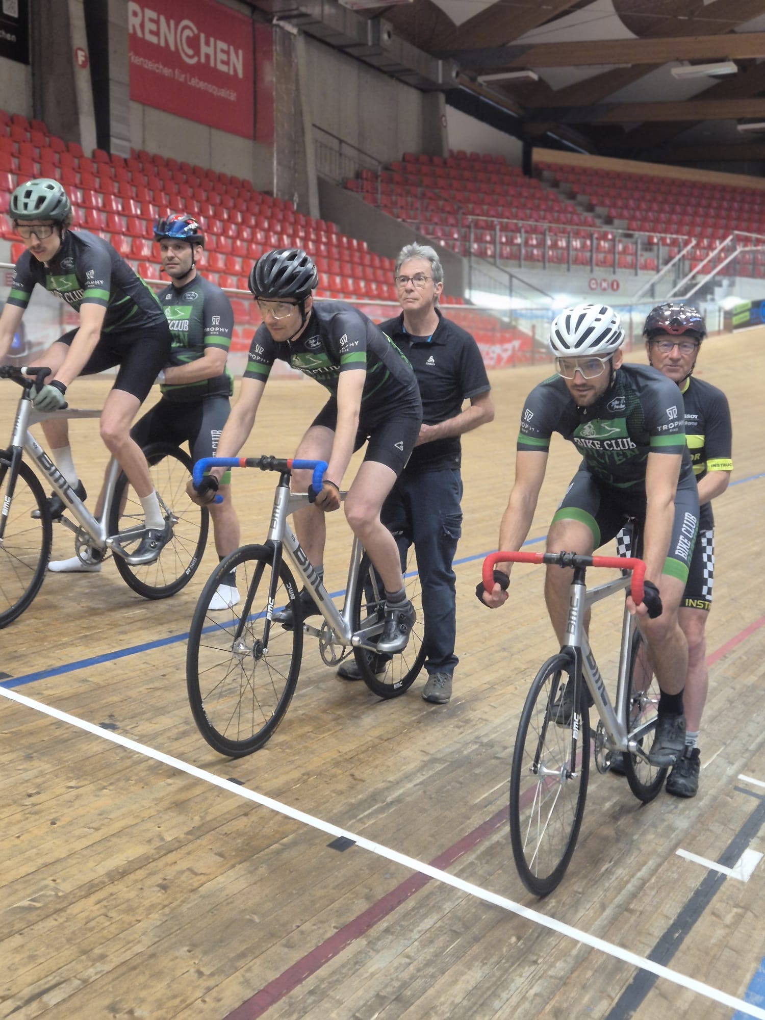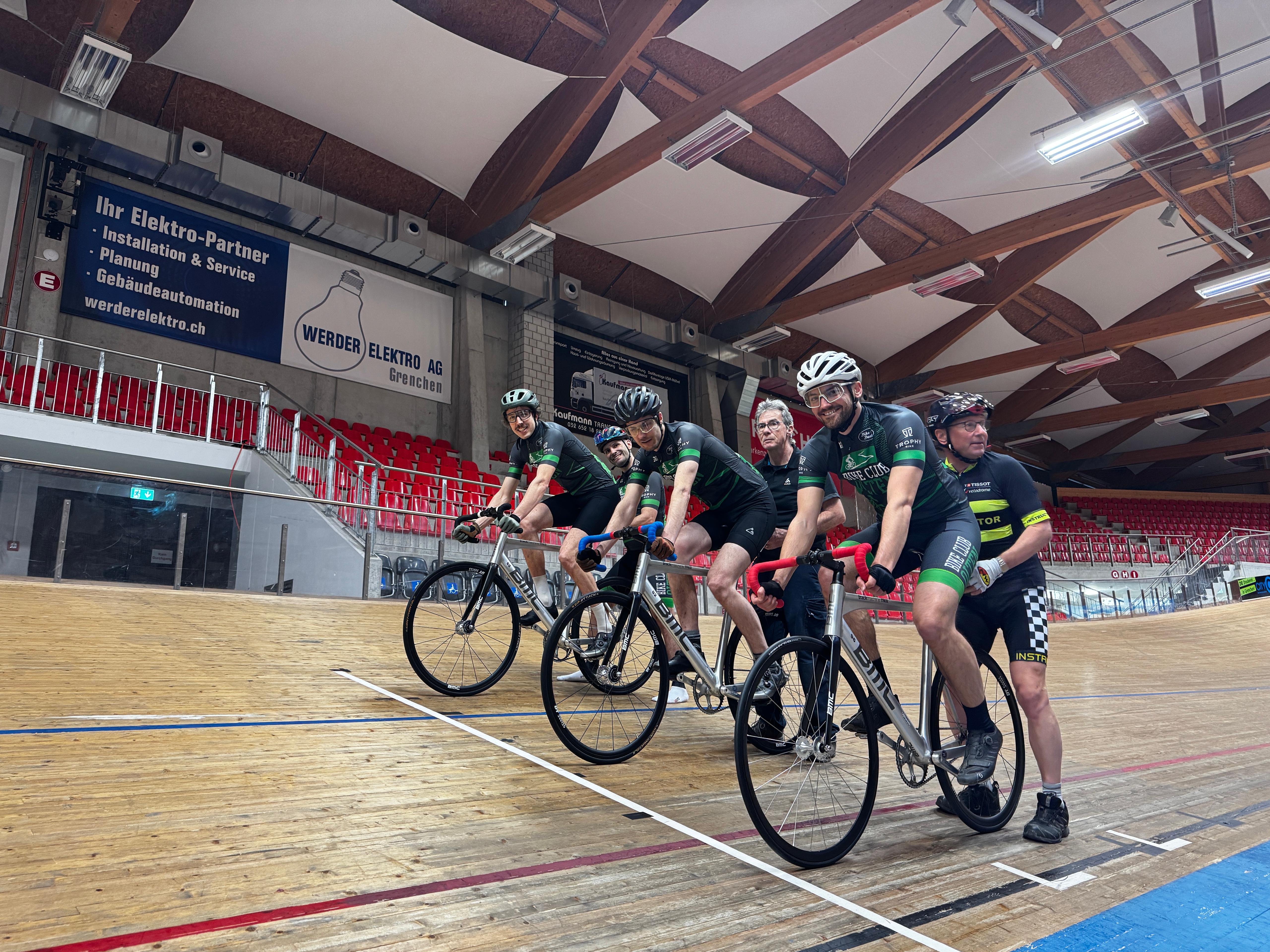 Am Samstag, 01.02.2025, trafen sich die mutigsten Bike-Club-Mitglieder und einige Externe in Grenchen beim prestigeträchtigen Tissot Velodrome. Hasi, unser Präsident, organisierte zum wiederholten Mal einen Bahnschnupperkurs. Das Stadion bietet dafür mit einer Kapazität von 1'900 Zuschauern und modernsten Garderoben die optimalen Voraussetzungen.